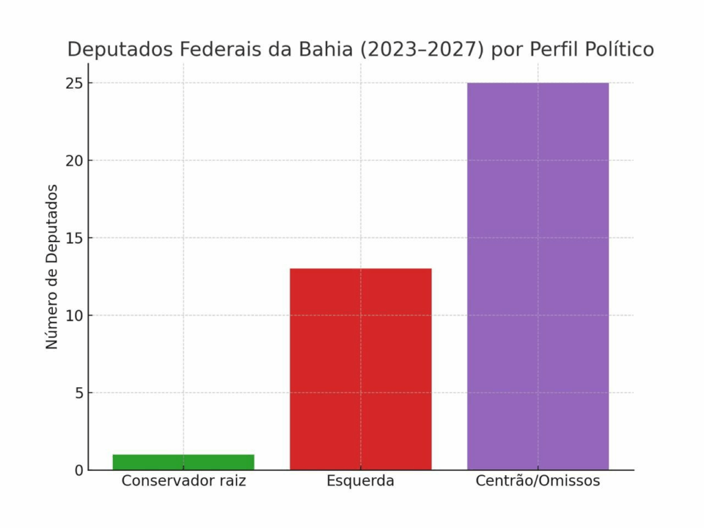 A pesquisa deixa evidente: dos 39 deputados federais da Bahia, apenas um atua de forma plenamente coerente com as pautas da direita. O restante se divide entre uma maioria omissa/pragmática e uma ala consolidada à esquerda.