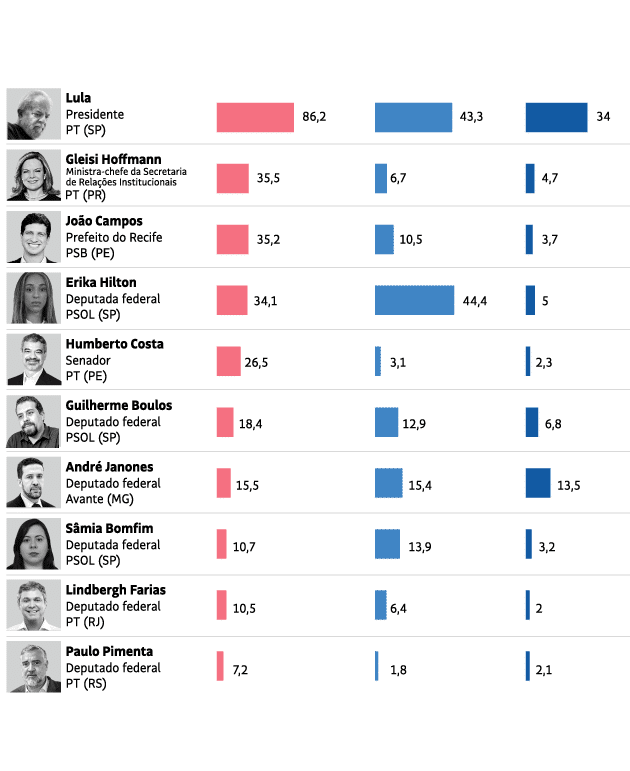 Entre os nomes mais populares do governo nas redes, destacam-se Fernando Haddad (7,2 milhões de seguidores) e Marina Silva (5,7 milhões). Ainda assim, os números não compensam a falta de mobilização coordenada no entorno digital do governo.