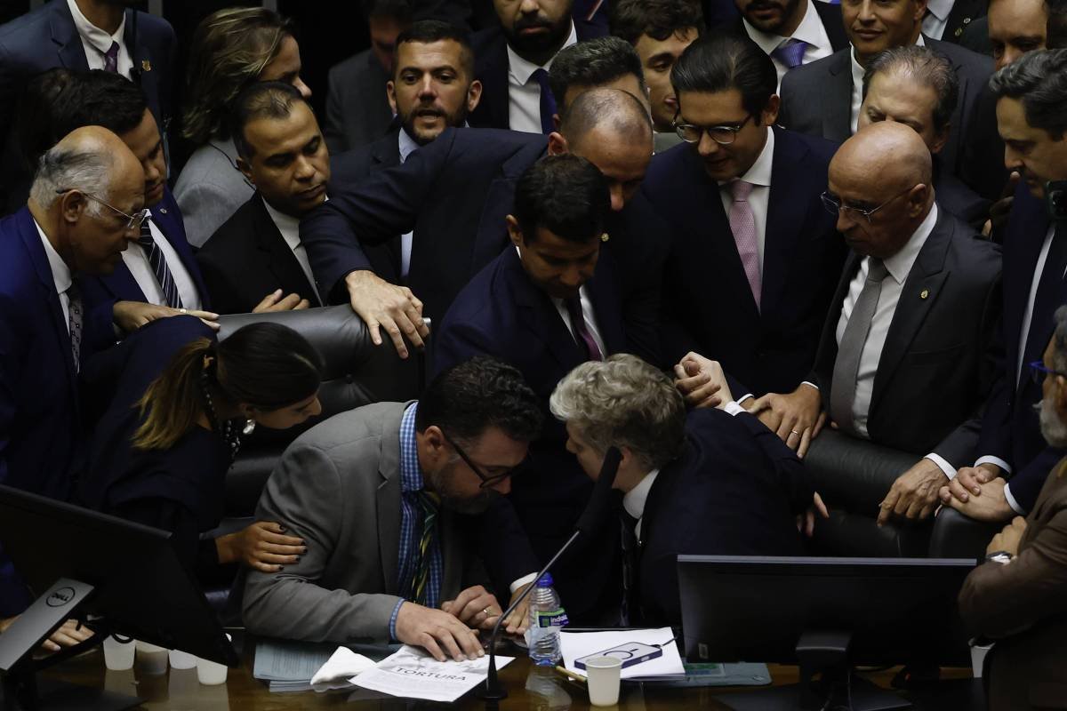 Na Câmara dos Deputados, o presidente Hugo Motta (Republicanos-PB) afirmou que analisa imagens do motim ocorrido no plenário para definir se parlamentares serão punidos. O episódio, registrado na noite de quarta-feira (6), aconteceu quando deputados bolsonaristas resistiram em liberar a Mesa Diretora durante protesto contra a prisão domiciliar de Bolsonaro. Entre os citados por colegas estão Zé Trovão (PL-SC), que bloqueou a subida de Motta, Marcel van Hattem (Novo-RS) e Marcos Pollon (PL-MS). Motta sinalizou que condutas que impeçam o funcionamento legislativo podem levar a suspensão de mandato por até seis meses.